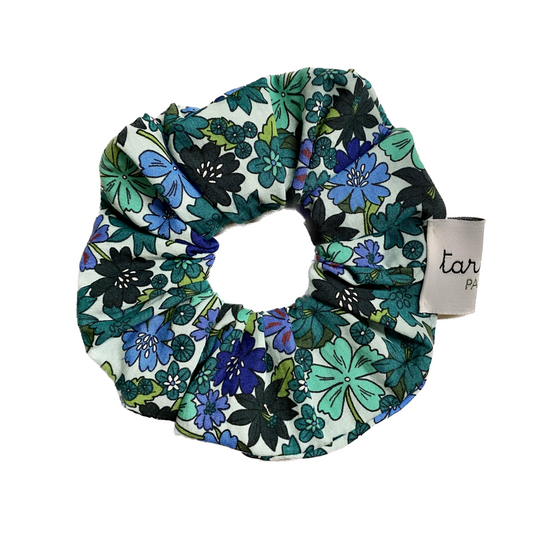 Chouchou fleurs liberty vert et bleu